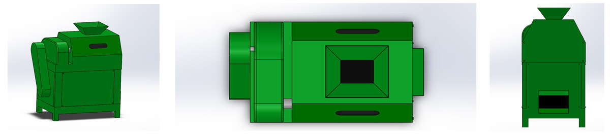 2.傳動聯(lián)接部分:本機由電動機驅(qū)動皮帶輪、三角帶、減速機傳動,使機頭工作。另有鏈輪、鏈條組成傳動鏈傳遞給破碎分離工作部分。其中減速機與機頭工作部分,用尼龍柱銷式聯(lián)軸器傳遞驅(qū)動。